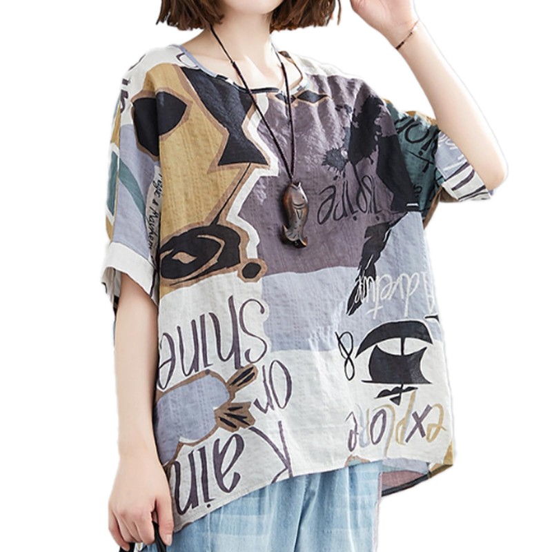 - Introducing a top with attractive natural colors. The loose silhouette makes it easy to pick up your body lines and provides a relaxed fit. The bold pattern and calm colors make it perfect for a mature casual style without being overly overwhelming. With different designs such as floral, geometry and stripes, each one is sure to be a staple of your outfit. Breathable and comfortable to wear in summer