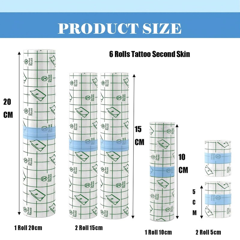 - 6 Rolls Tattoo Second Skin:This set includes 20cm x 2m x 1 Rolls,15cm x 2m x 2 Rolls,10cm x 2m x 1 Rolls,5cm x 2m x 2 Rolls,Total 140 cm 12M,Such diverse size options allow you to flexibly cut them according to your actual needs, fully meeting various requirements in your daily life.