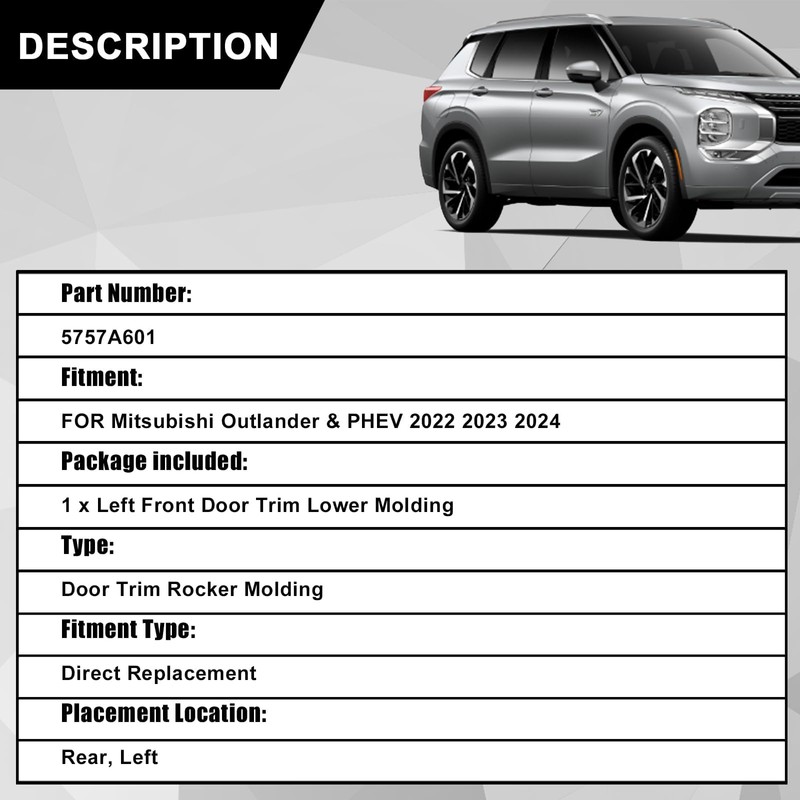SecosAutoparts Door Trim Molding Lower Rear Left Front Compatible with Mitsubishi Outlander & PHEV 2022 2023 2024 Replace# 5757A601 Driver Front Door Trim Lower Molding