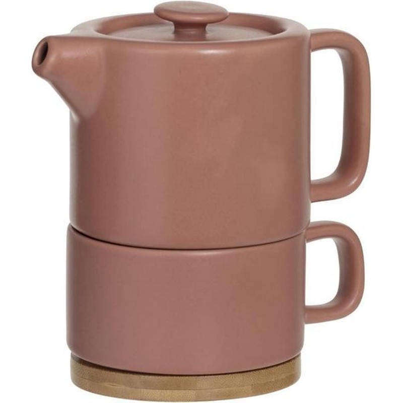 SECRET DE GOURMET Natural Teapot with Cup, 800 ml, Light Pink, Colour: Terracotta
