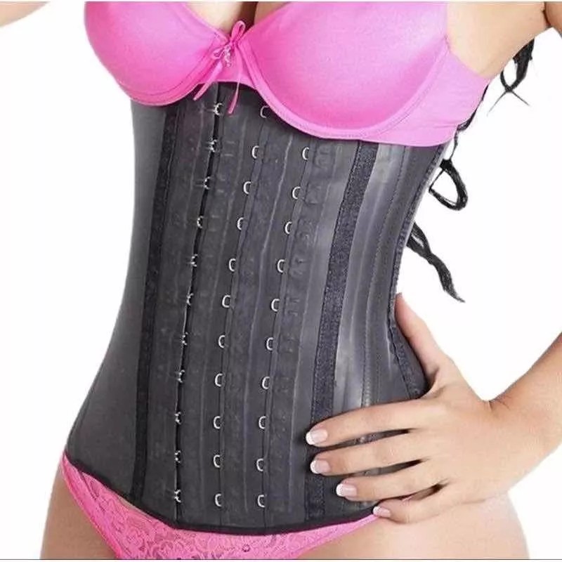Faja cinturilla de látex a la vista, máxima compresión e interior de algodón. Cuenta con 13 broches de 3 posiciones para mayor ajuste. Tiene varillas internas metálicas.