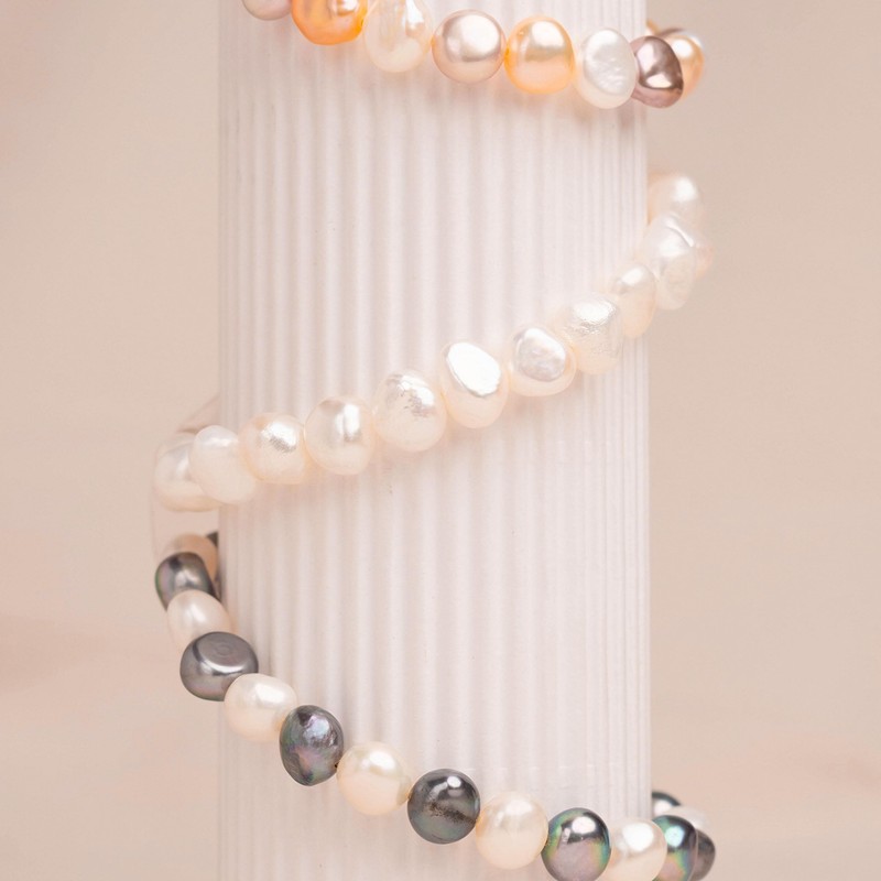 - Secret and You Baroque Freshwater Cultured Pearls Bracelet, Available with White Pearls, White Pearls and Pearls Dyed in Purple and Blue, White Pearls and Pearls Dyed in Pink.