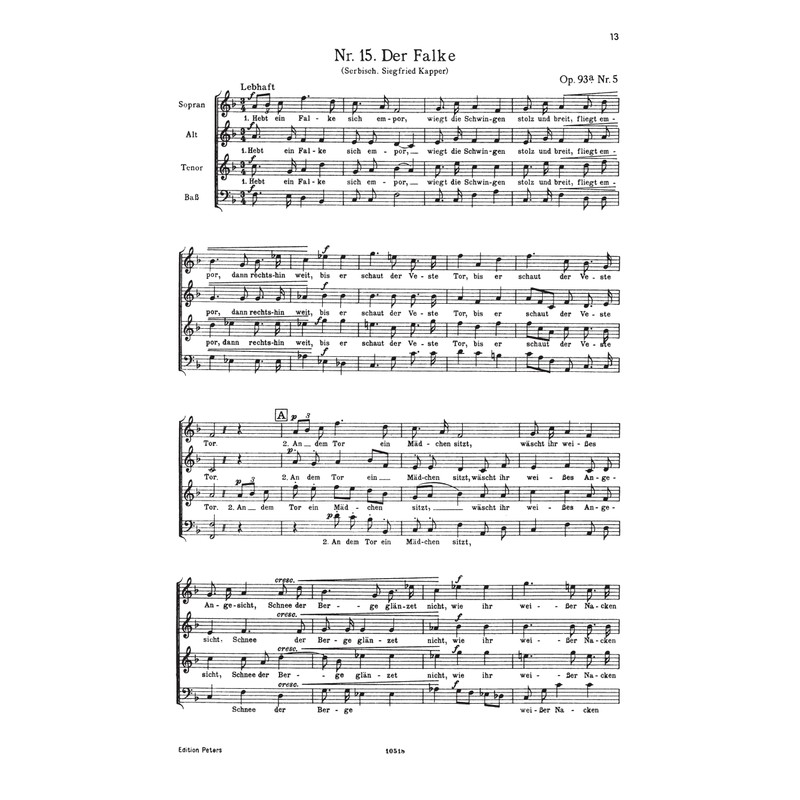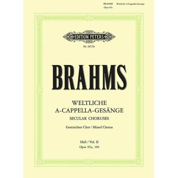Secular Choruses Opp. 93a 104 for Mixed Choir 4-6 Voices and Piano (Edition Peters)