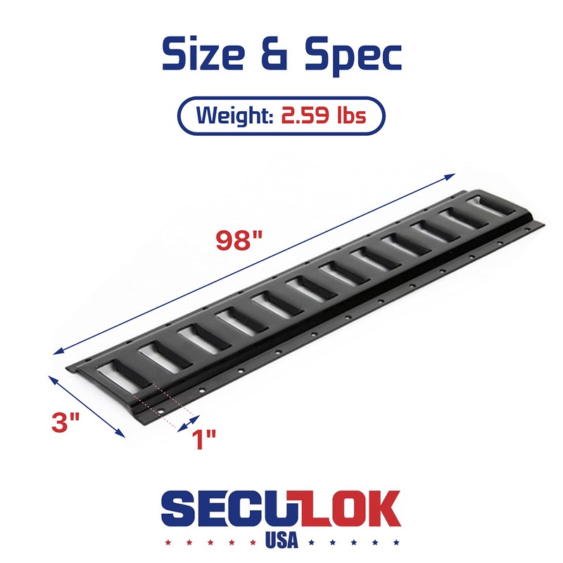 - 【Effortless and Reliable】Mounting the E-track tie-down rail system on metal or wood walls or floors is quick and straightforward, requiring only a few screws and adjust the setup. Please note that they are not designed for use as ramps; their intended purpose is for tying down. The SECULOK E-Track Tie-Down Rail Kit ensures a safe and convenient workspace for your needs.