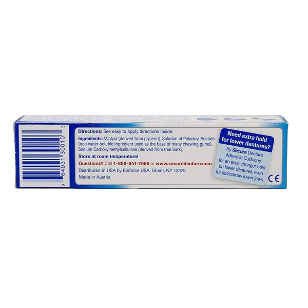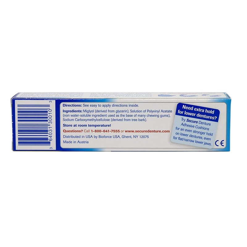 SECURE Denture Adhesive Cream is a healthy alternative to other adhesive products. The non-water soluble bond makes this adhesive stronger and you do not ingest or swallow the ingredients. It is taste free and Zinc Free.