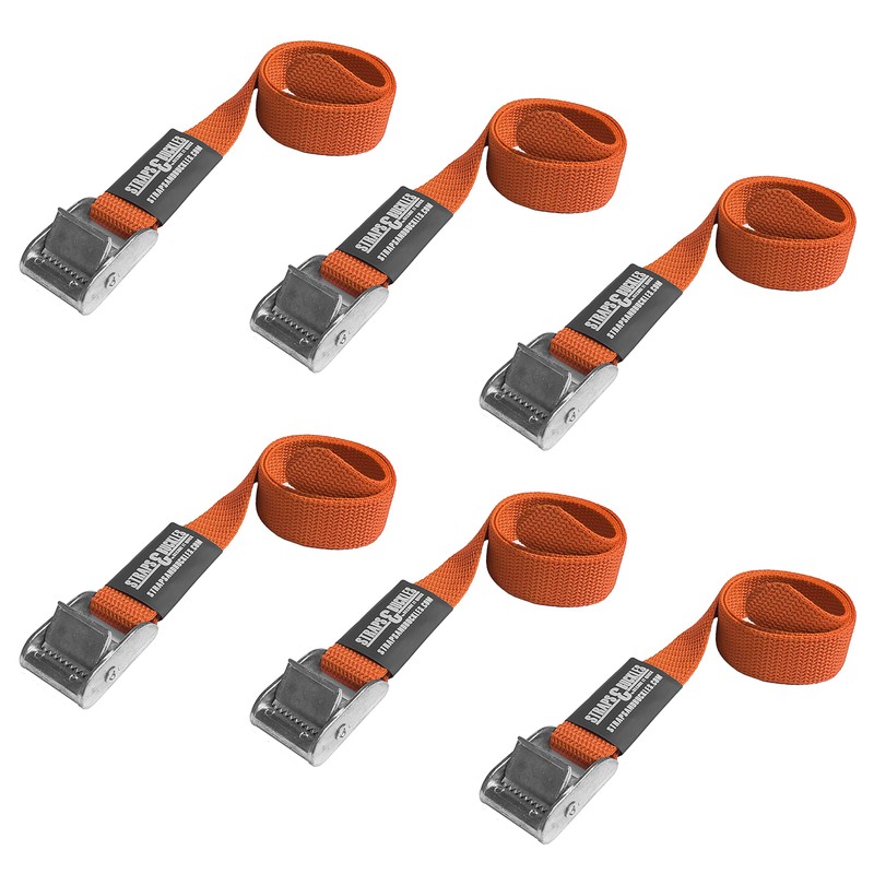 SECURE IT QUICK Straps & Buckles - Cinch Tie Down CAM Cargo Utility Lashing Straps - 1" Wide Heavy Duty Webbing (24" Length - 6 Pack, Orange)
