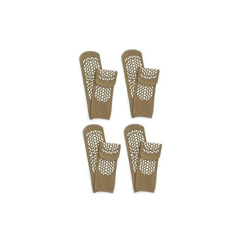 "Secure Step" Double-Sided Tread Non Slip Safety Socks, 4 Pair (Large, Tan)