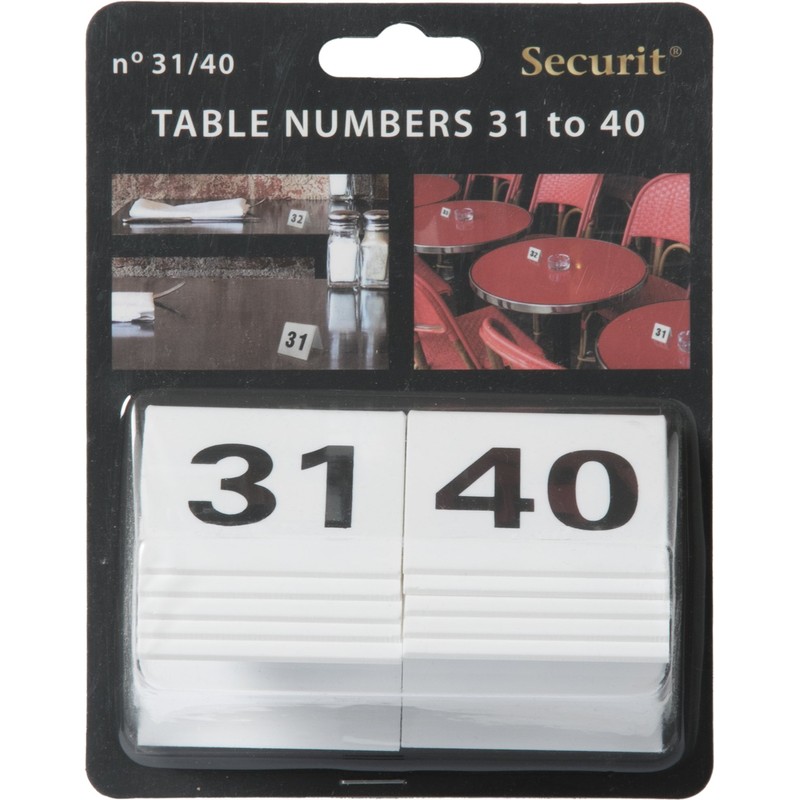 Securit Table Signs, Numbers 31-40, 4 x 4 x 5 cm (TN-31-40), TN-31-40-WT