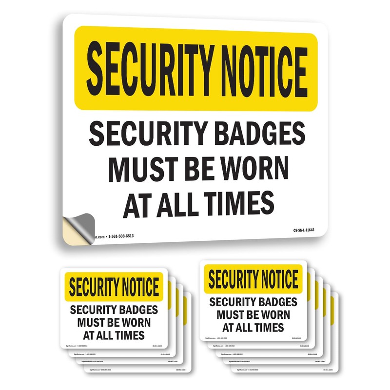 Security Badges Must Be Worn OSHA Security Notice Vinyl Decal Label 7 Inch x ...