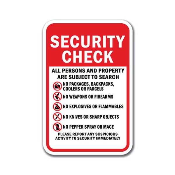 Security Check All Persons and Property are Subject to Search Sign 12" x 18" Heavy Gauge Aluminum Signs