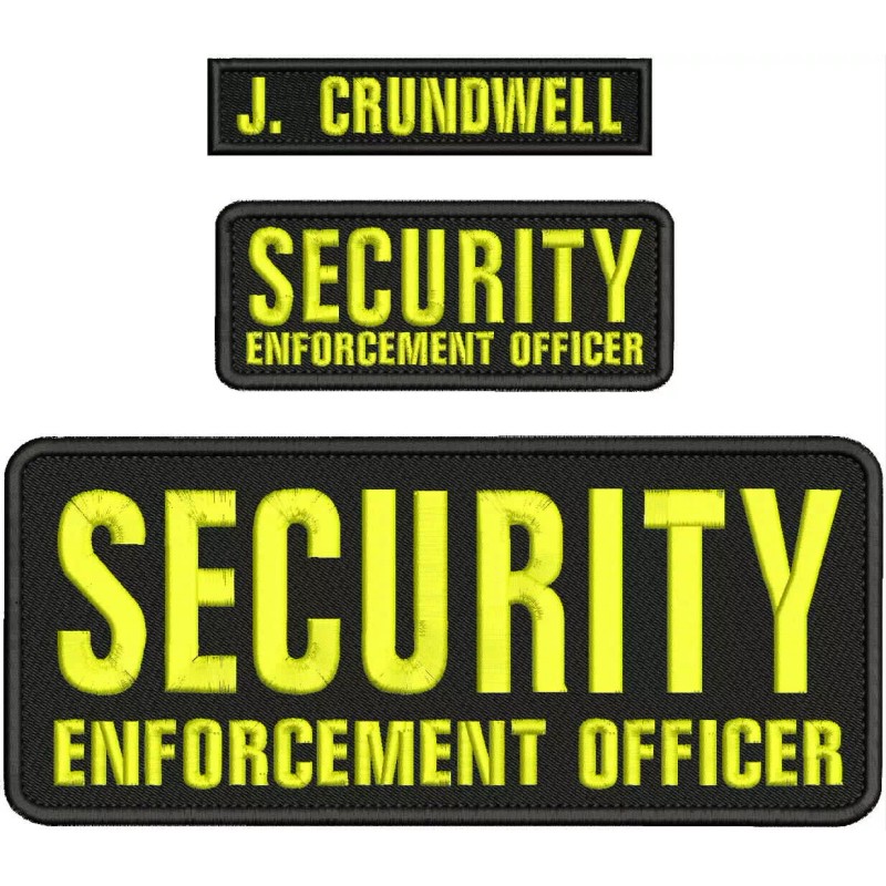 SECURITY E OFFICER EMBROIDERY PATCH 4X10 & 2X5'' HOOK ON BACK BLK/yellow