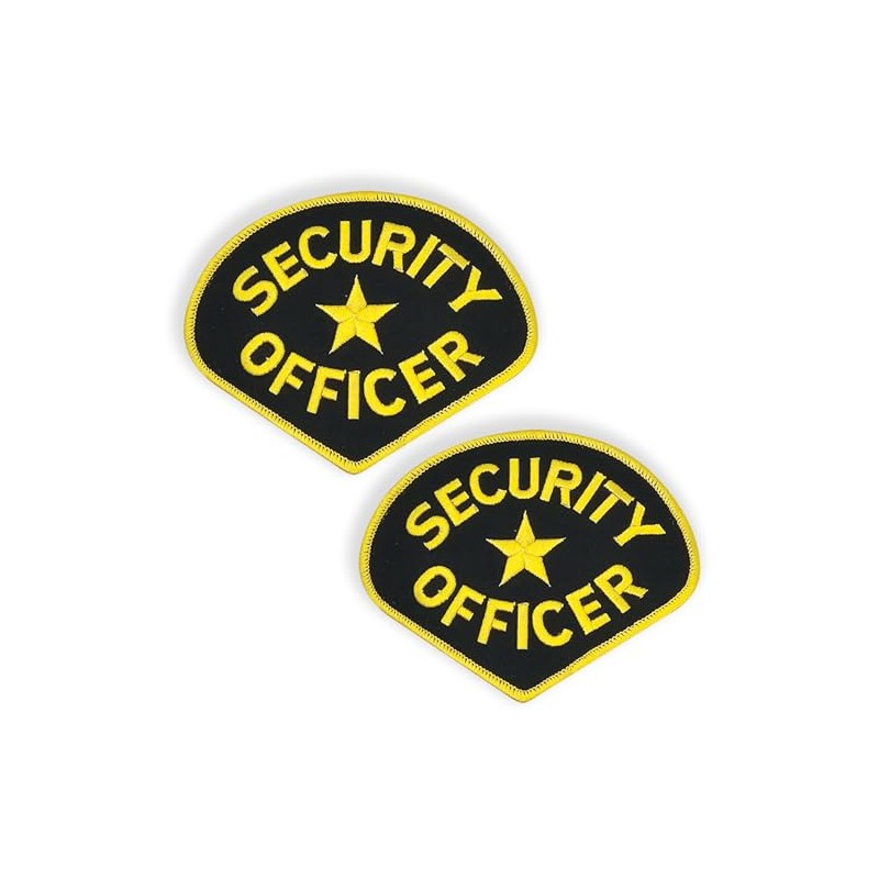 Security Officer Guard Badge Patch (2 Pack) Embroidered, Shield, Black & Yellow/Gold Breast Chest or Shoulder. for Jacket or Any Shirt