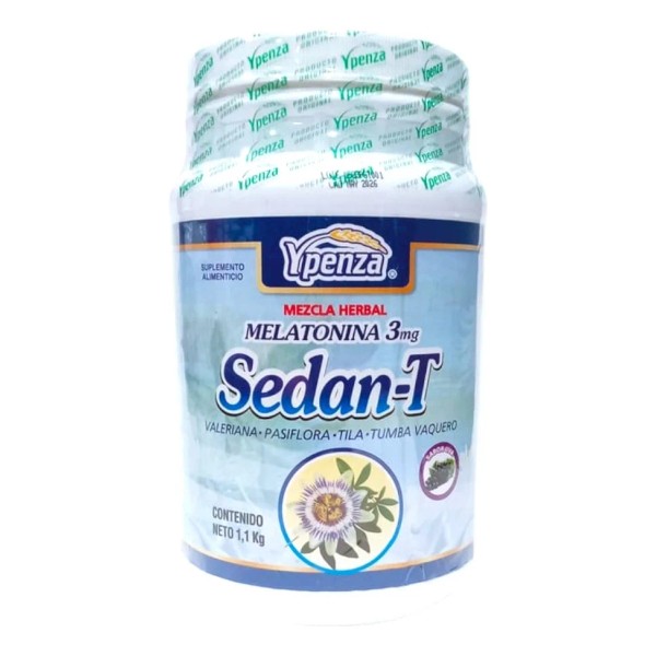 SEDAN-T MELATONINA 1,1 K de Ypenza es un suplemento nutricional diseñado para aquellos que buscan mejorar su calidad de sueño y bienestar general. Este producto en formato de polvo combina melatonina con una mezcla herbal que incluye valeriana, pasiflora, tila y tumba baquero, ingredientes conocidos por sus propiedades relajantes y calmantes.