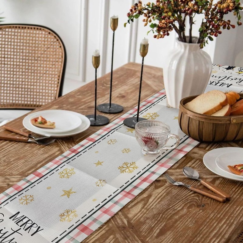 SEDEX Christmas Table Runner Pink Green Buffalo Plaid Xmas Theme Decoration Seasonal Winter Snowflake Merry Xmas Holiday Kitchen Dining Table Cloth 72 Inches Long for Home Party Outdoor