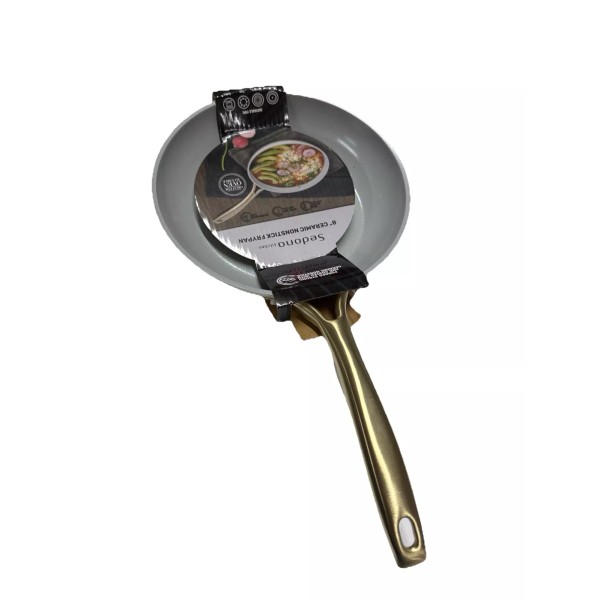 The Sedona brand frying pan features a ceramic surface coating and comes in a beige color. It is perfect for frying and grilling different types of food. This frying pan is a great choice for those who are looking for a durable and reliable cooking tool.