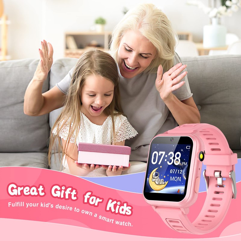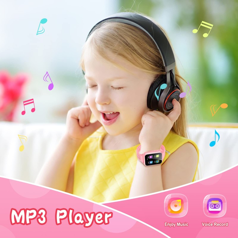 - 【Fun Selfie-Cameras/Video】Kids smart watch is equipped with HD cameras. Children can take photos and record videos, capture record every joyful moment in their lives. With big head sticker shooting, children can take some hilarious photos with family or friends.
