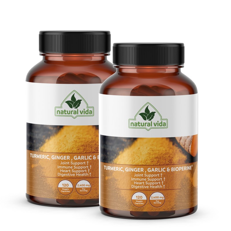 Natural Vida 4-in-1 Turmeric Garlic Ginger with Bioperine (240 Capsules) 2,400 mg Curcumin