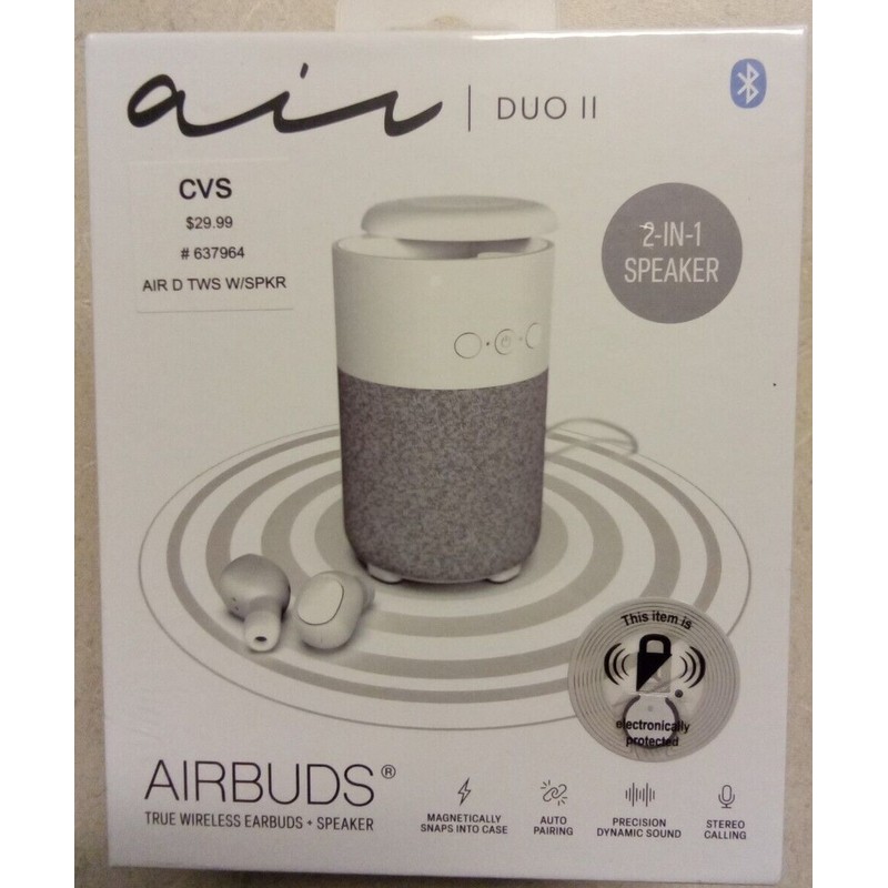 InEar Air Magnetic Airbuds, True Wireless Earbuds w/Bluetooth 2-IN-1 Speaker. White.