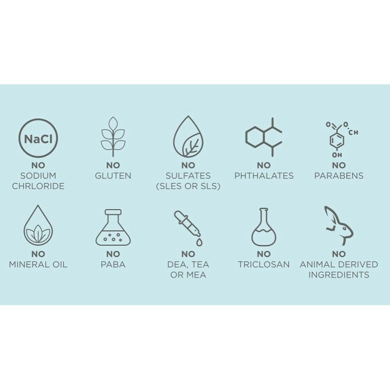 - Vegan formula, No parabens, No phthalates, No mineral oil, No gluten, No DEA/TEA, No animal testing