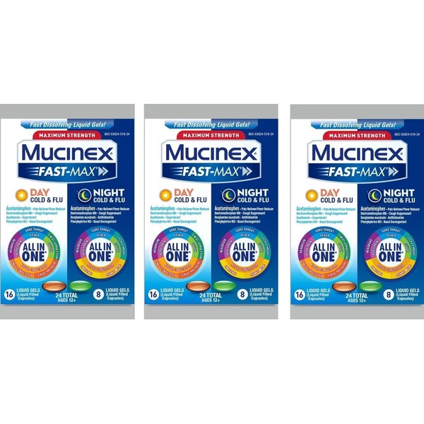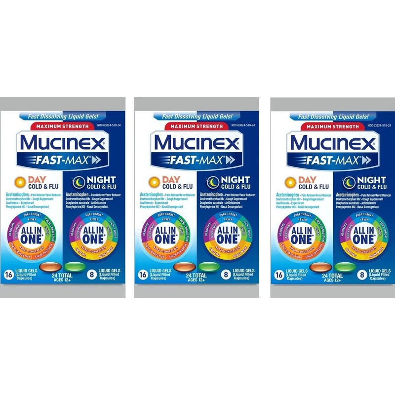 Mucinex Fast-Max Day/Night Cold & Flu Liquid Gels 24ct (3 Pack)