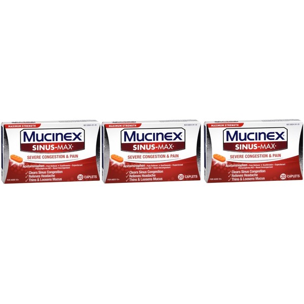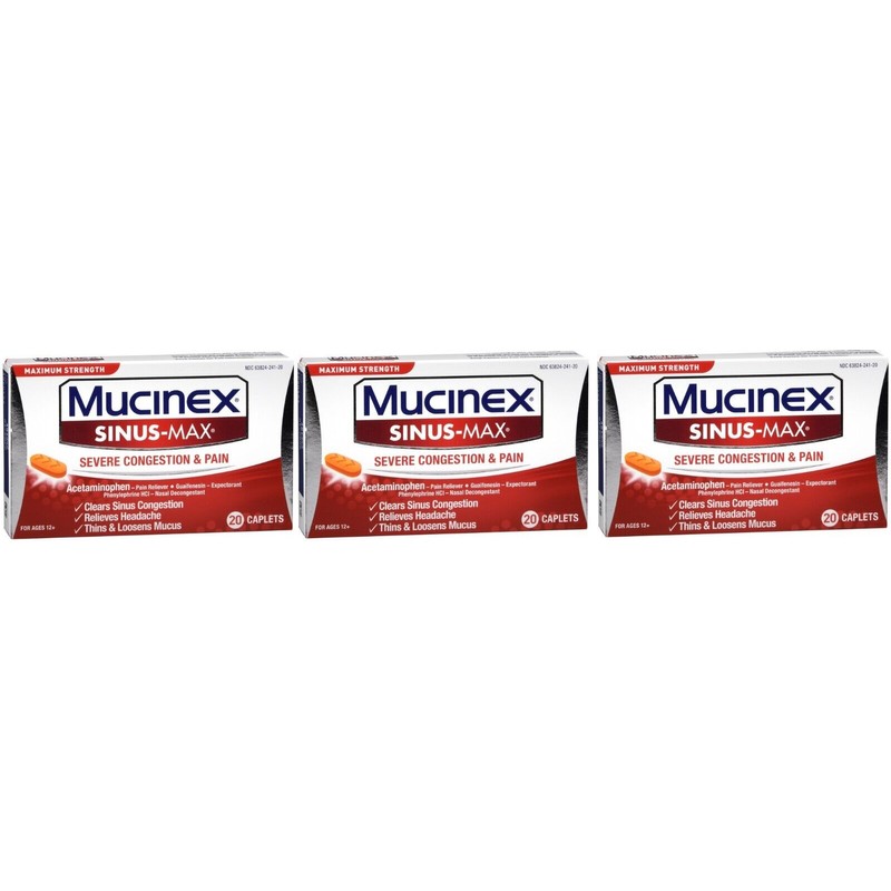 Mucinex Sinus-Max Severe Congestion & Pain Caplets 20ct (3 Pack)