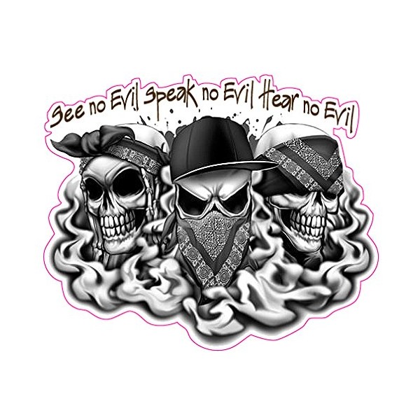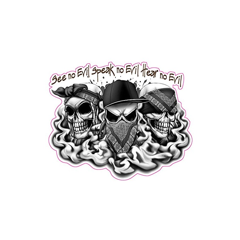 - See No Evil Hear No Evil Speak No Evil V2 Decal 5" in size.