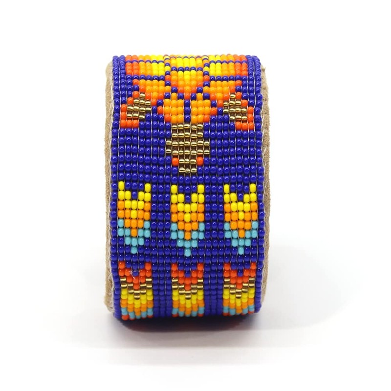 Seed Beads Beaded Cuff Bracelet (Royal Blue Turtle)