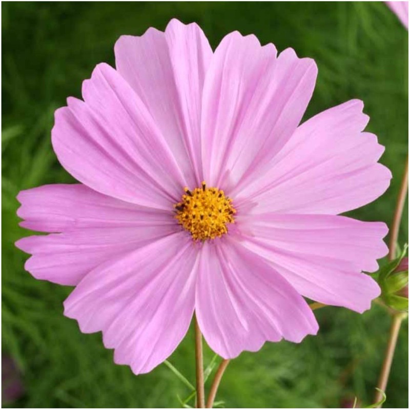 - Appearance and Variety: Pinkie Cosmos, known botanically as Cosmos bipinnatus 'Sensation Pinkie', features large, single, purplish-pink flowers with yellow centers. This variety is celebrated for its vibrant color and is part of the broader Cosmos family, known for its daisy-like flowers.