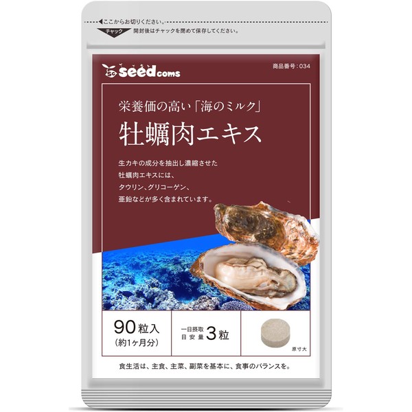 Seedcoms Oyster Meat Extract, Supplement, Taurine, Glycogen, Zinc, Mineral, Approx. 1 Month Supply, 90 Tablets