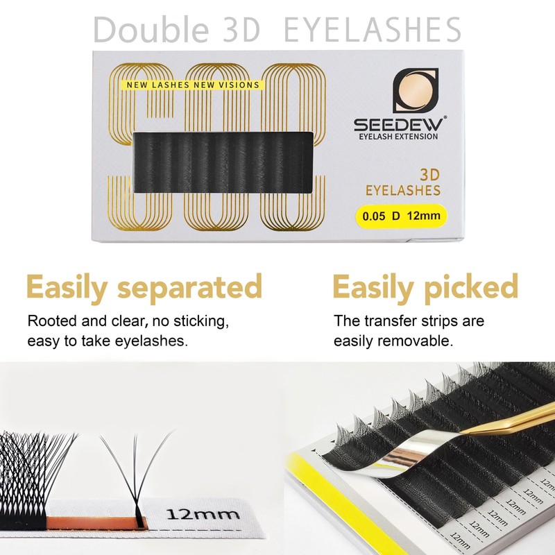 - ❤️【Double Tips 3D Lashes】Compared with 3D lashes, double tips 3D lashes are double volume and thickness. Get a 6D long stem cluster instantly, without any skills. The double tips 3D eyelashes, lightweight and fluffy, with long flat stem design can be easier grafted to your own eyelashes. A lash artist can serve more clients in less time. Beginner friendly.