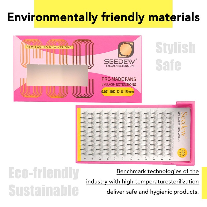 - 【120 Premade Fans Lashes】You don't have to fan lashes yourself anymore. A lash artist can serve more clients in less time. Beginner friendly.The pointed thinner base of SEEDEW handmade 10D premade lashes can better cover the natural eyelashes without gaps. Get volume and fluffy lashes more easily and quickly!