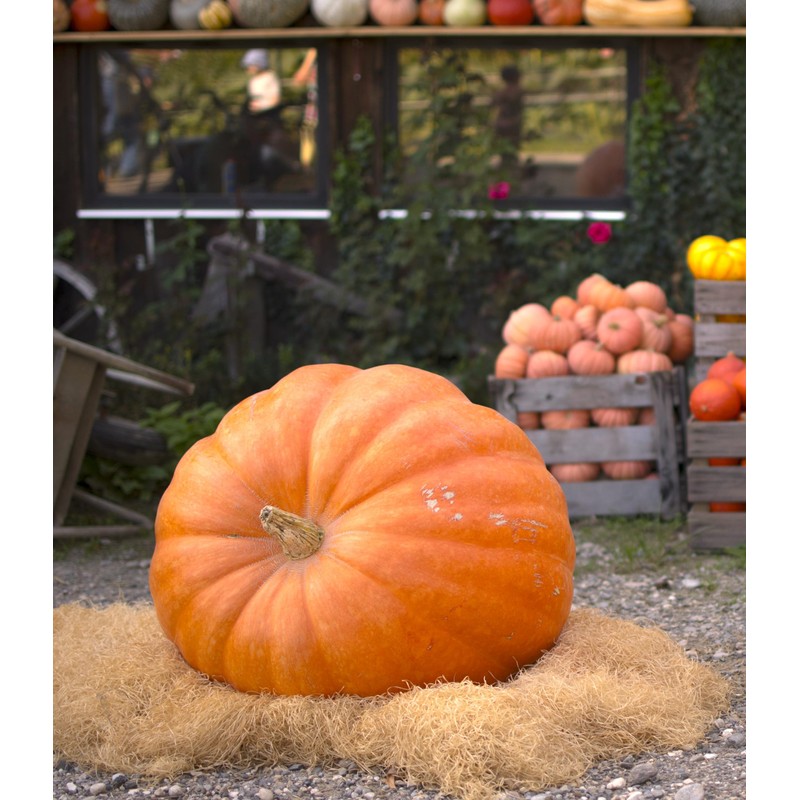 A huge pumpkin growing 50–200 pounds with smooth, bright orange skin and thick flesh. Ideal for carving and decorations as well as for baking and cooking.