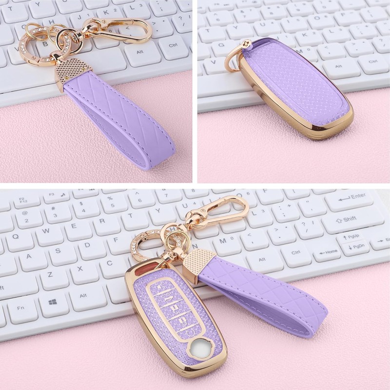 Seedwee for Nissan 5 Buttons Key fob Cover, Soft TPU Keys Protector Bling Key Fob Keychain for 2023 2024 Pathfinder Rogue Remote Key, Gold Purple