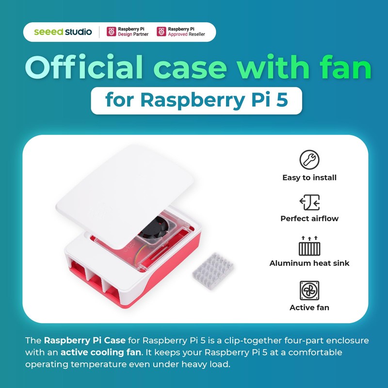 - ●Cool & Protected: Official Pi 5 case with advanced cooling system keeps your board running smoothly.