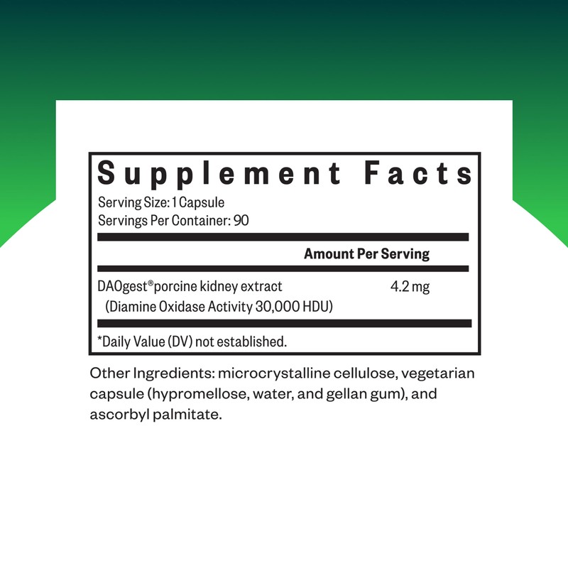 • Fast-acting: Take 1 capsule no more than 15 minutes before the consumption of histamine-rich foods or drinks, or as directed by your healthcare provider, to keep histamine intolerance symptoms like gas and bloating at bay, and experience gastrointestinal relief. It is not designed to allow you to eat foods to which you are allergic, and it will not prevent allergic reactions