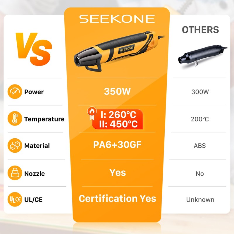 Safer: SEEKONE mini heat gun has plastic insulated body with nozzle safety shield ensures you not to be hurt easily.