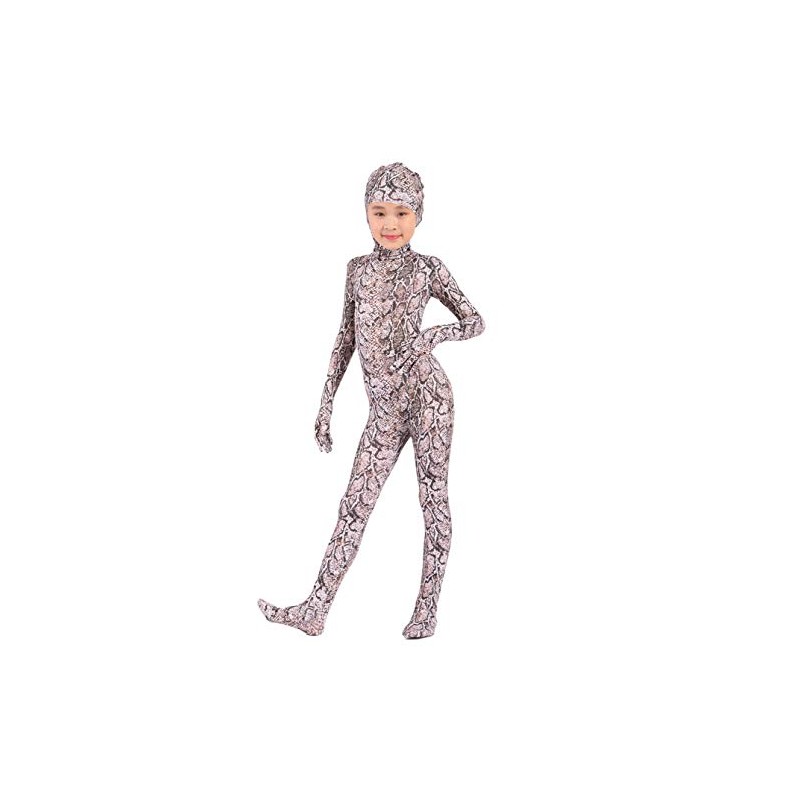 Seeksmile 6-12 Years Old Child Kids Costume Leopard Cheetah Snake Print Bodysuit Open Face Full Body Zentai Jumpsuit (Kids Medium, Snake C)