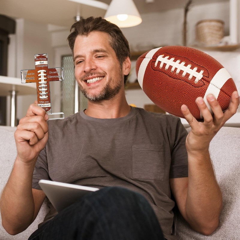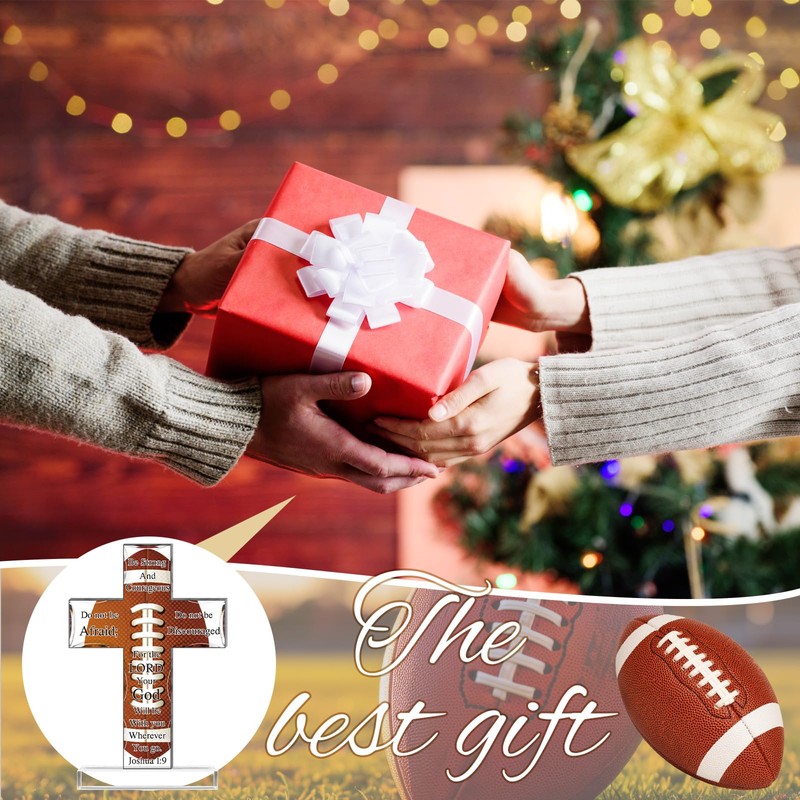 Seeloowy Acrylic Football Cross Gifts Football Accessories for Men Inspirational Football Cross Gifts with Bible Verse Football Religious Scripture Gifts for Football Players Lovers