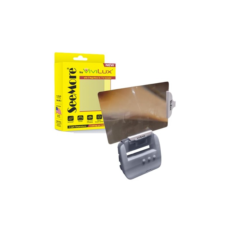 SeeMore by ViviLux HandsFree LED Light + Magnifier, Includes Lanyard for Wearing. Includes 3X and 7X Optical Grade Distortion Free magnifiers. Rechargeable Battery Lasts up to 40 Hours on a Charge.