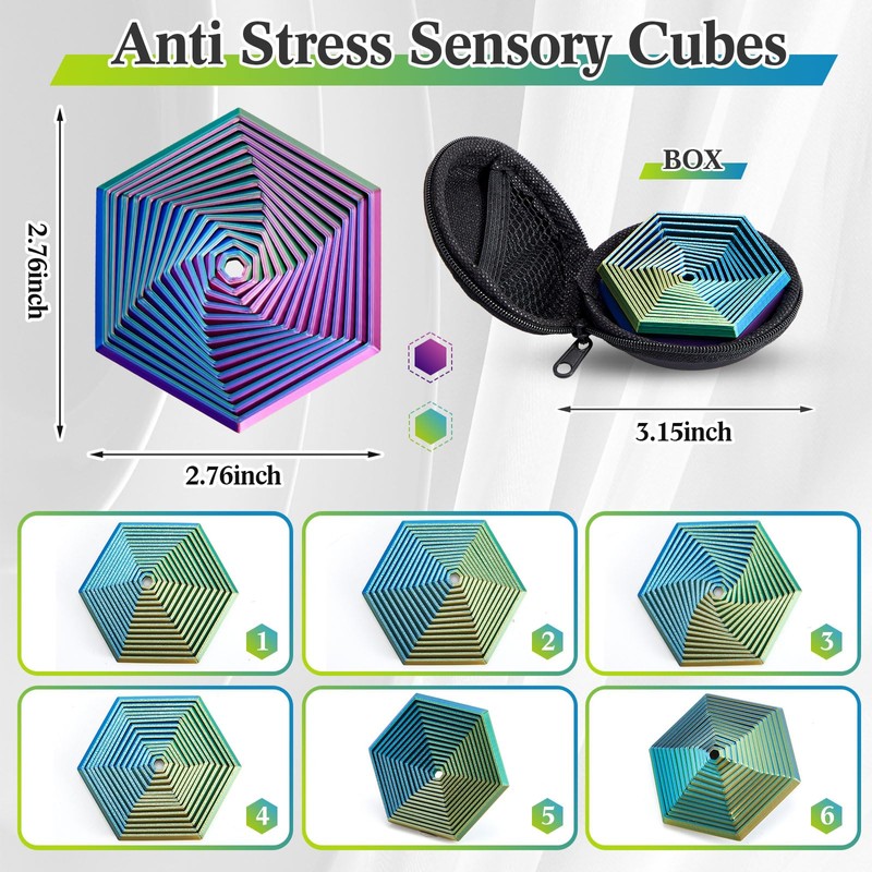 - Compact Design: the colorful fractal fidget hexagon is 2.76 inches in length, and it comes with a storage box measuring 3.15 inches in diameter; Their compact size makes them extremely convenient to carry around, ensuring that you have a stress reliever at your fingertips whenever you need it