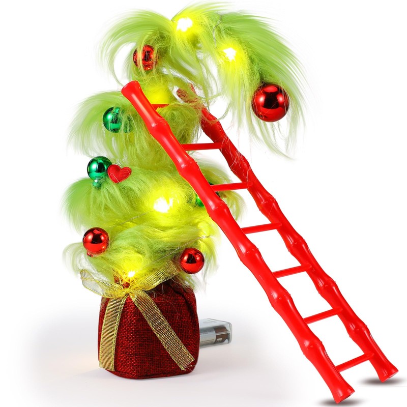 - Christmas Table Decoration: these lime green Christmas decorations are green as the main color, and the furry decor are matched with red and green balls, full of Christmas atmosphere; They also come with a mini ladder and LED strings to add a touch to the Christmas tree arrangement