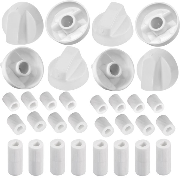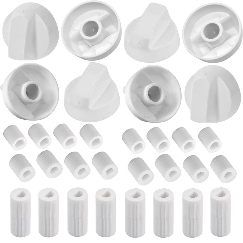 • PACKAGE INCLUDES: 8 pieces White Stove Knobs Replacement,there are 24 pieces adapters , 2 different styles, 8 long and 16 short.