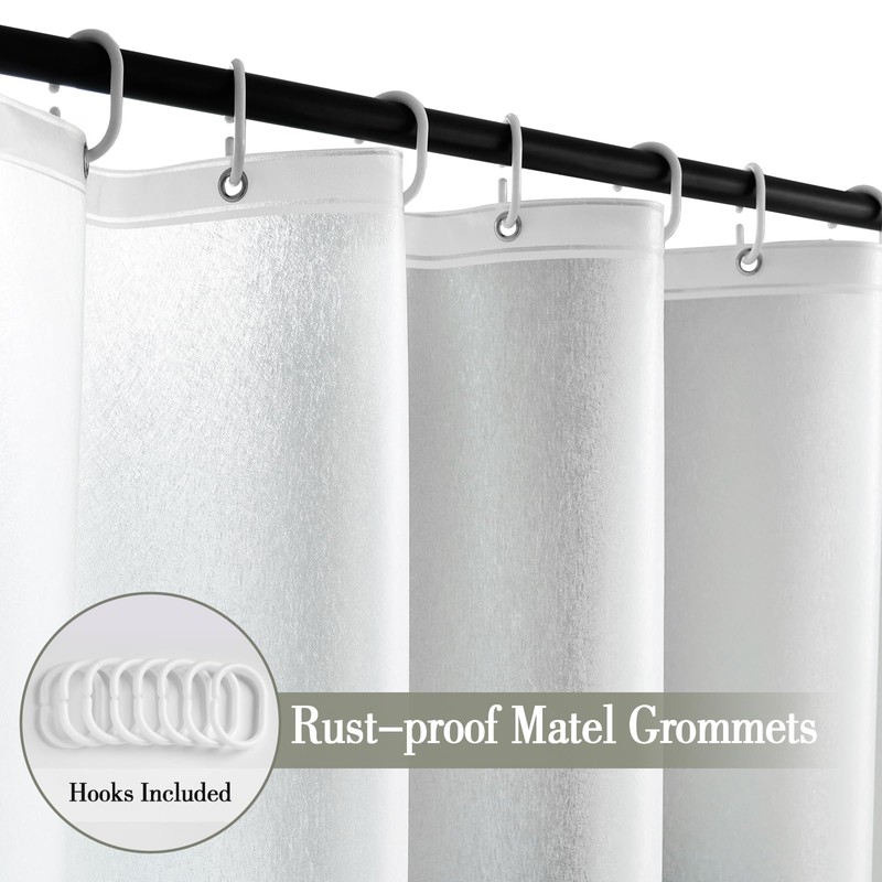 - 【Frosted & Retain Privacy】This lovely frosted shower curtain liner with 3d silk textured adds a lovely, mysterious and elegant atmosphere to your bathroom. The semi transparent shower curtain with design allows light to pass through, keeping the bathroom bright but preserving privacy. So it can be used as a stand-alone shower curtain or as a shower liner to protect outer shower curtain from wet or dirt.