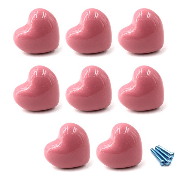 SeeRaphee Pink Ceramic Cabinet Handles Drawer Pulls Knobs Heart Shape Cupboard Knobs For Kitchen Knobs Kids Room Cabinets Closets Toy Organizer Box Bookcase-8PCS