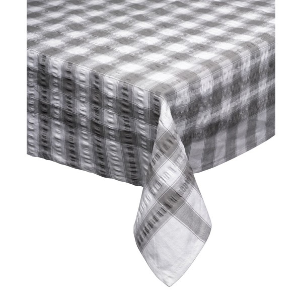 • This traditional cotton seersucker tablecloth has a checked pattern and the fabric has wrinkled stripes throughout.