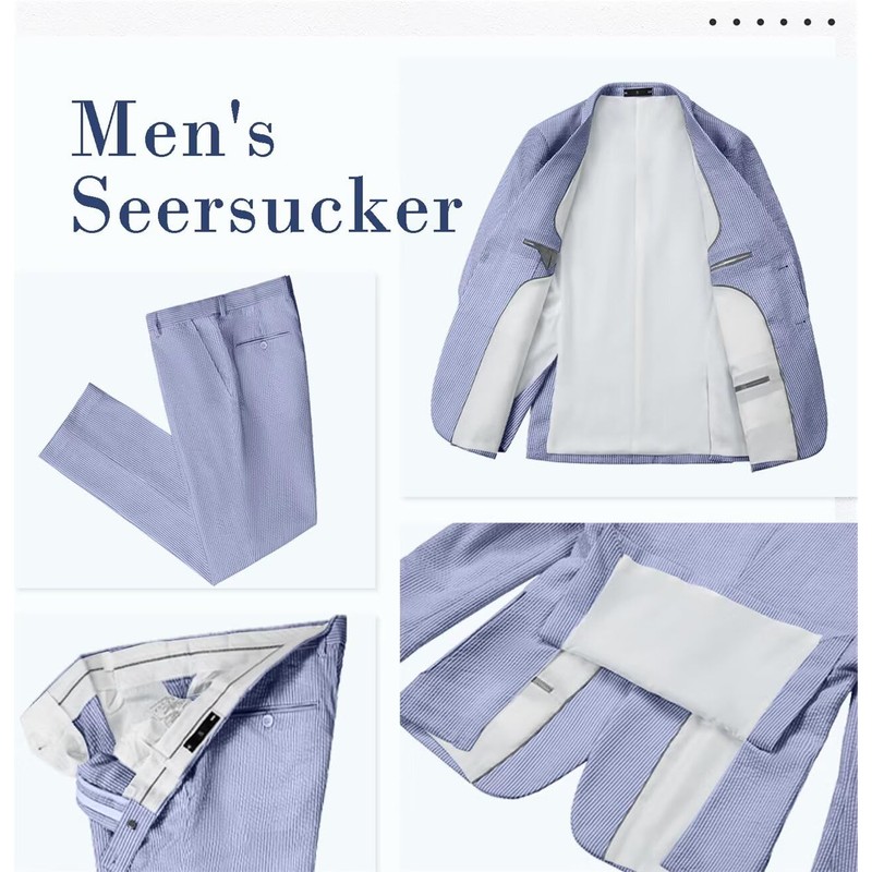 - You can get:Jacket + Pant ,2-Piece Seersucker Suit.Seersucker fabric,comfortable,breathable and lightweight,summer 2 piece suit set.