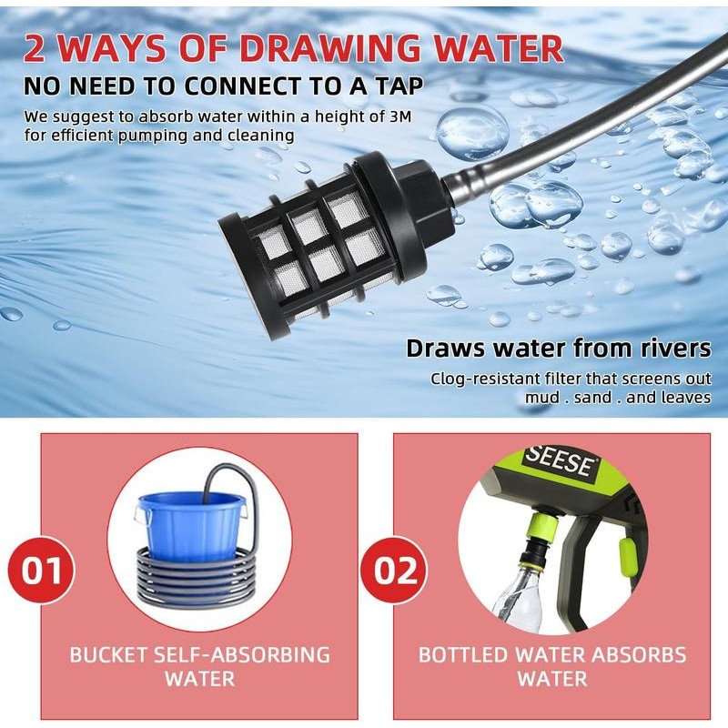 SEESE Cordless Pressure Washer and Single Port Charger Base, Bottle Portable Washer for Car,Home Cleaning & Garden Watering:_300PSI-Water Pressure