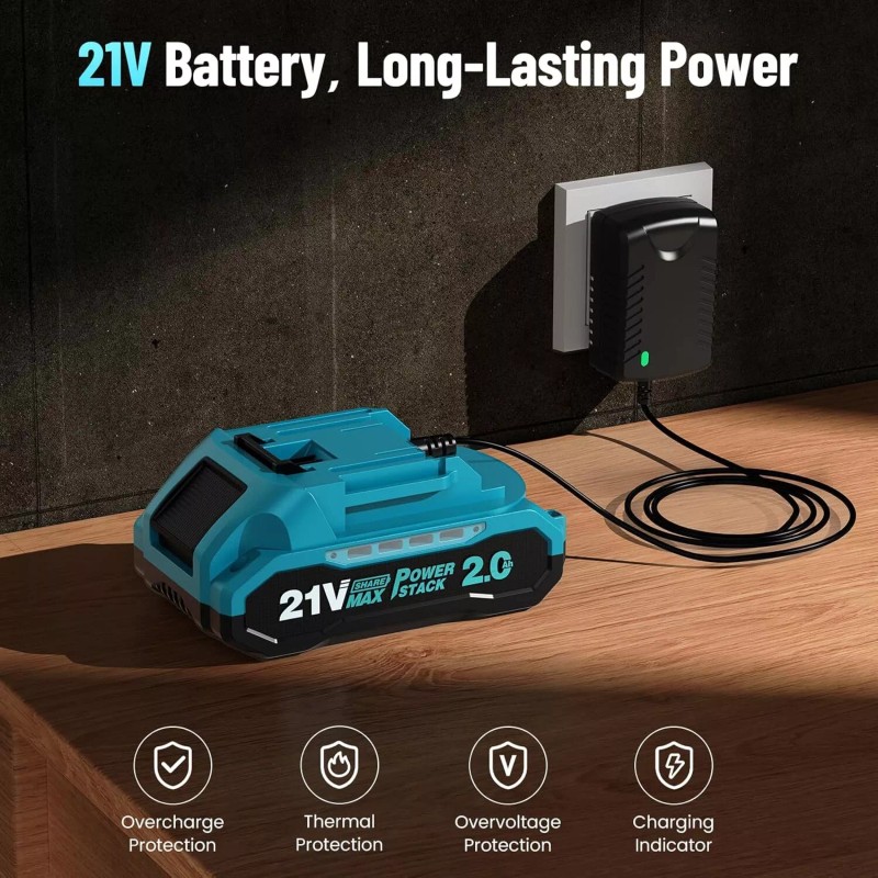 - 21V Power Drill: This 21V power drill comes with a 2.0Ah rechargeable lithium-ion battery, providing a runtime of 1-3 hours and a maximum no-load speed of 1350 RPM. It features a 3/8-inch keyless chuck and a 25-position clutch for precise torque adjustment, allowing you to control the depth of screws or fasteners with ease.