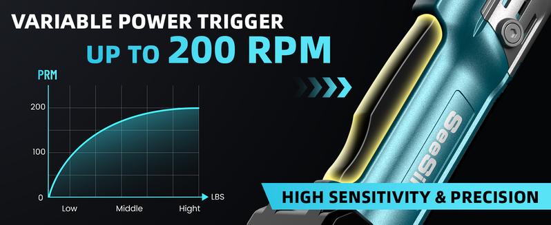Seesii 3/8" Cordless Ratchet Wrench with 66Ft-lbs 200RPM, 2x 21V Batteries, Power Ratchet Driver with Variable Speed,8 Sockets, 1/4" and 1/2" Adapter, and 3" Extension Bar, RT600B Angle Wrench
