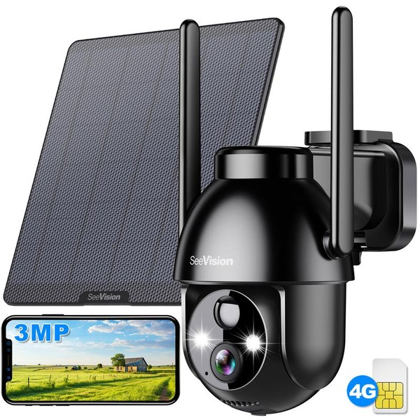 SeeVision 4G Solar Powered Wireless Outdoor Security Camera, Rechargeable, Waterproof, AI Analysis and Recognition, Support Cloud/SD Storage